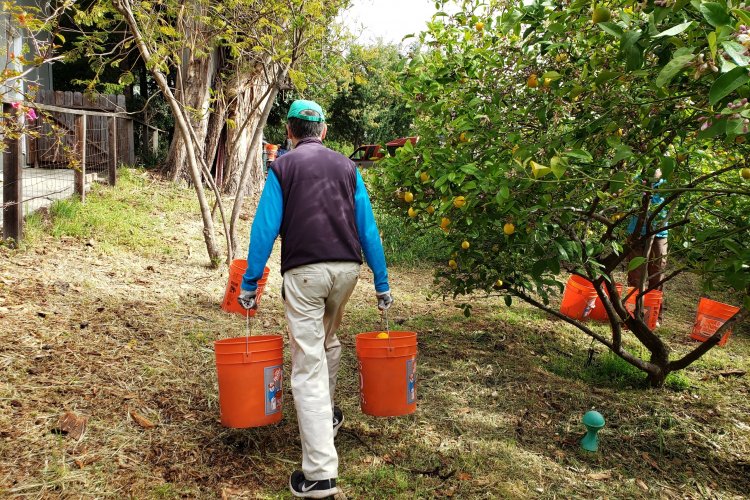 Sadly Karen has passed away, but her husband Dave discovered Village Harvest last year and we were happy to help him share Karen's legacy orchard again in 2020. With 39 enthusiastic volunteers, we harvested over 3500 pounds of beautiful meyer lemons and delivered them to a local food agency. We are sharing some of our favorite harvest photos here - Enjoy!