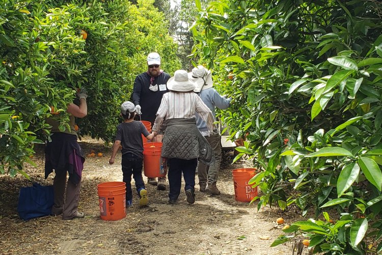 The "Giant Orange Orchard" is a navel orange orchard in North San Jose filled with 1,500 trees, a 14 acre island of the Valley's agricultural past surrounded by the tech companies and apartments of modern Silicon Valley. It is the last large orchard remaining from the "Valley of Heart's Delight" when our area was the biggest fruit producing region in the world. The farm family has owned the land for 105 years, and fruit from the orchard was harvested and sold commercially through 2017. The family first found Village Harvest in 2018 and liked sharing their fruit with the community so much that they donated their entire crop again in 2022 to help others.