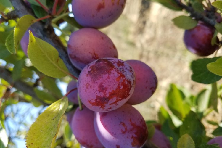 Color: Plums ripen to many colors depending on the variety – from almost black, purple or red, to pale green. It can be difficult to tell if a piece of fruit is ripe just by looking.